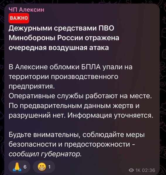 Отмечается, что жители Алексина слышали громкие взрывы, а к месту атаки россиянам пришлось отправить много пожарных машин и карет скорой помощи.