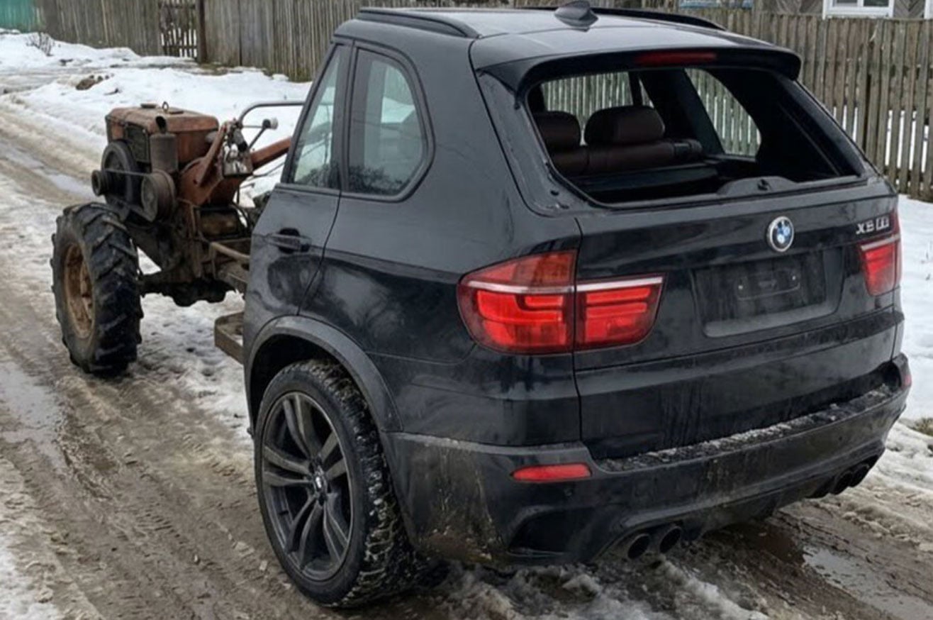 В Украине выставлен на продажу мотоблок с прицепом, изготовленным из задней части автомобиля BMW X5. Объявление о продаже появилось в соцсетях.