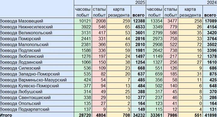 Далее следуют Нижнесилезское (4,5 тысячи, +9,1%) и Великопольское (3,6 тысячи, +5,3%) воеводства. В Нижнесилезском воеводстве, куда входит Вроцлав, — одном из самых проблемных для иностранцев регионе Польши, где дела могут рассматриваться годами, ситуация улучшилась. В целом за год там рассмотрели почти 65 тыс. дел иностранцев о ВНЖ (против 37,6 тысячи в 2024 году) и вынесли более 60 тысяч положительных решений. В основном они касаются украинских граждан.