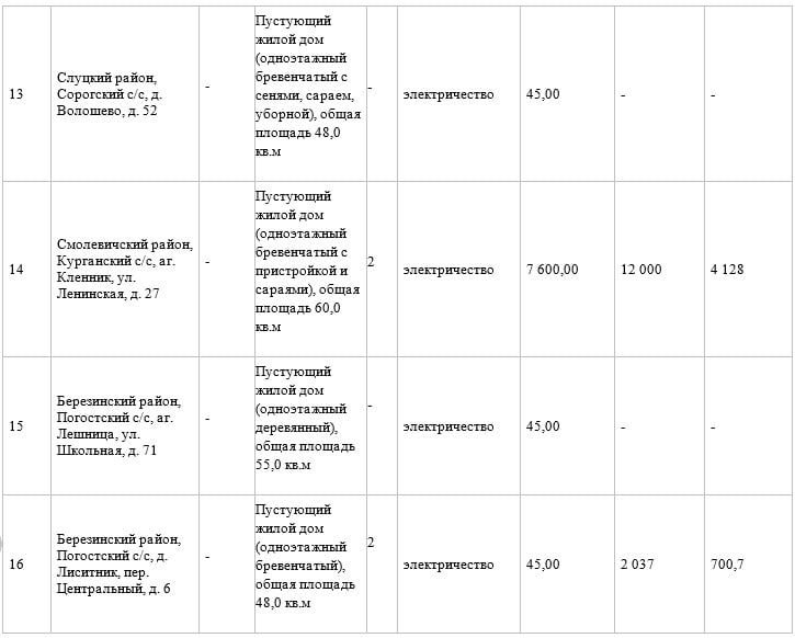 На 4 лота поступило по 2 заявки. Пустующие жилые дома расположены в Слуцком, Смолевичском и Березинском районах.