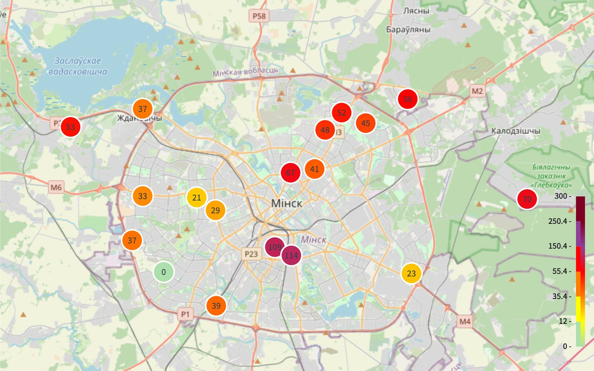 — 20 января в утренние часы в четырех районах города (проспект Независимости, 110А, ул.Тимирязева, 23, ул.Радиальная, 50, и микрорайон «Уручье») отмечено увеличение уровня загрязнения воздуха оксидом азота: максимальная из разовых концентраций достигла 2,5 предельно допустимой концентрации, — рассказали БелТА в ведомстве.