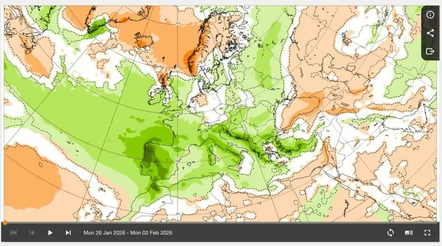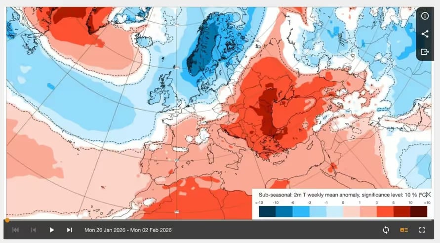 По их прогнозу, уже на следующей неделе в Беларуси отклонение температуры от климатической нормы составит 3–6 градуса, но уже не минус, а в сторону плюса. Если учесть, что климатическая норма января (по данным Белгидромета) составляет -4,1°С, а февраля -3,5°С, значит, уже на следующей неделе белорусам можно ждать плюсовых значений на градусниках.
