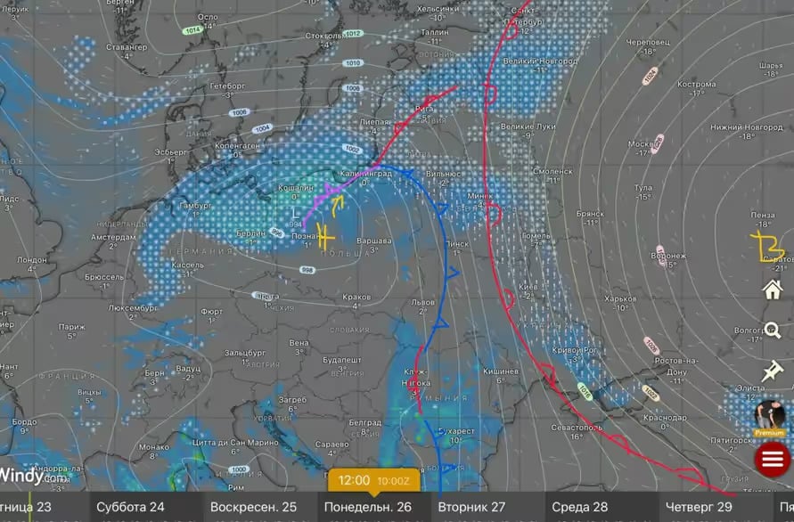 «Беларусь окажется в зоне его атмосферных фронтов и в течение суток 26 января ожидаются сложные погодные условия: снег будет неоднократно сменяться дождем и обратно, но в итоге мы останемся в его обширном теплом секторе, а потом в теплой, поступающей со Средиземноморья воздушной массе. Боюсь, к утру 27-го, на всей территории страны будет уже околонулевая температура воздуха и слякоть», - подробно описали картину в начале следующей недели авторы тематического канала.
