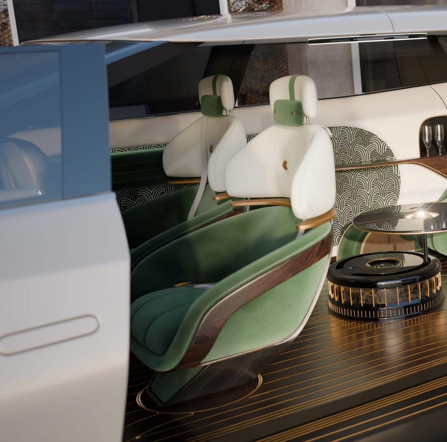 Интерьер — это настоящая роскошная гостиная на колесах с материалами из Италии, скрытыми экранами и стилем 1930-х годов. За движущую силу отвечают четыре электромотора мощностью почти 1 000 л. с., гибридный V6-генератор для увеличения запаса хода и адаптивная подвеска.