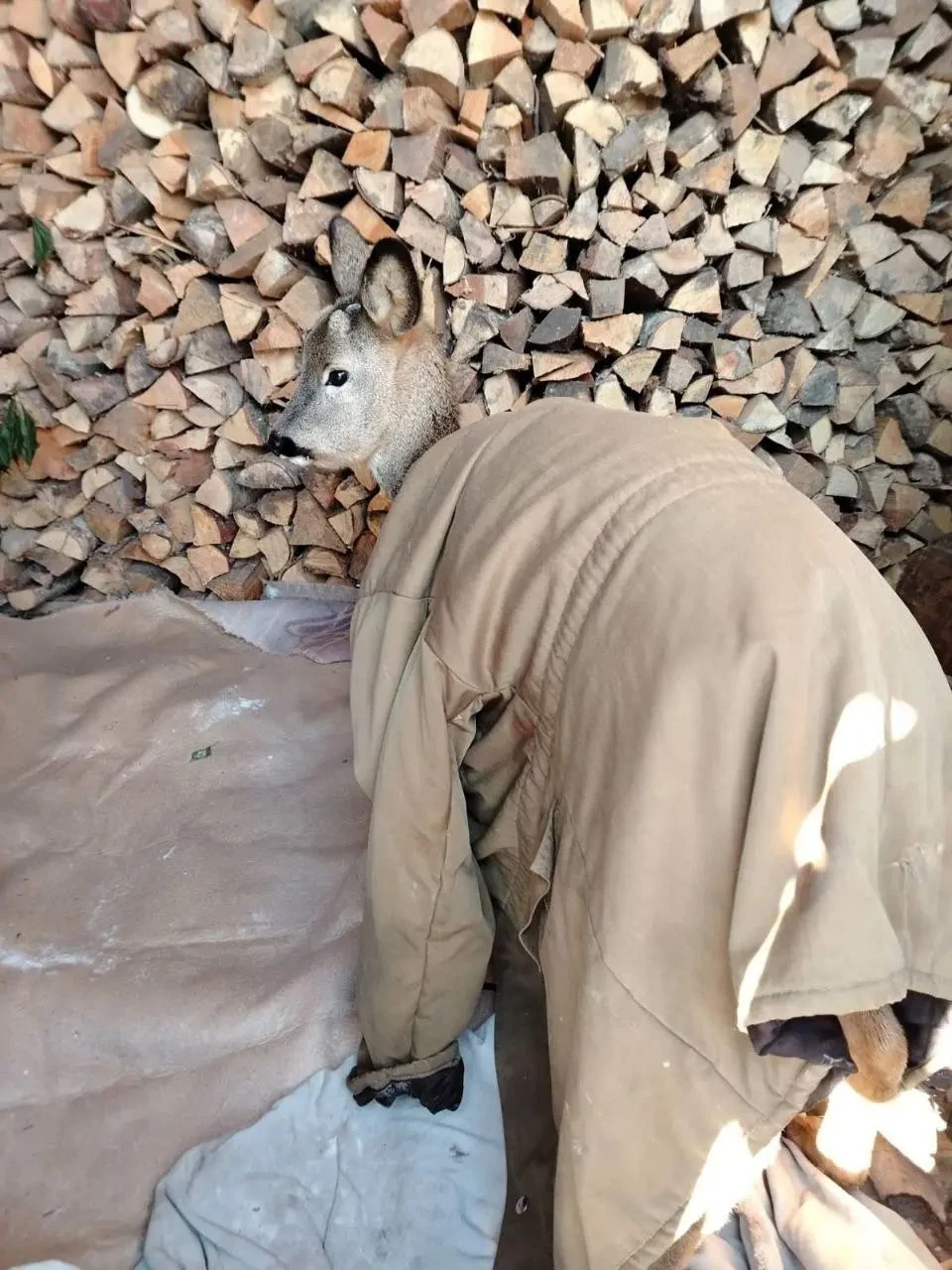 Местные не оставили лесного жителя в беде, ведь было понятно, что терпеть голод и холод у животного уже не было сил. Люди накормили гостя, а вот проблему с холодом решили очень оригинальным способом – косулю укутали в старое пальто из дедовского гардероба.