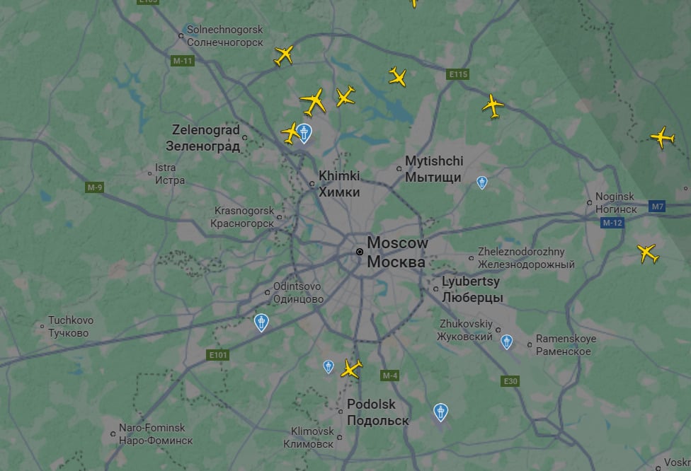 Также отметим, что если зайти на сервис Flightradar, то можно увидеть, что сейчас над Москвой практически нет самолетов.