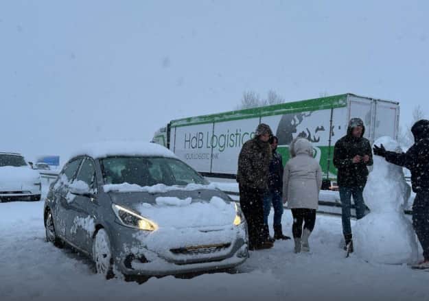 На некоторых трассах намело столько снега, что автомобили, особенно большие грузовики, буксуют и не могут преодолеть участки с подъемами – в частности, на трассе A32 на севере страны.