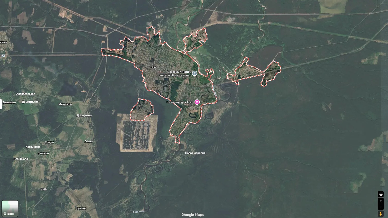 Первая из пораженных локаций расположена по координатам 58.262193, 43.846491.