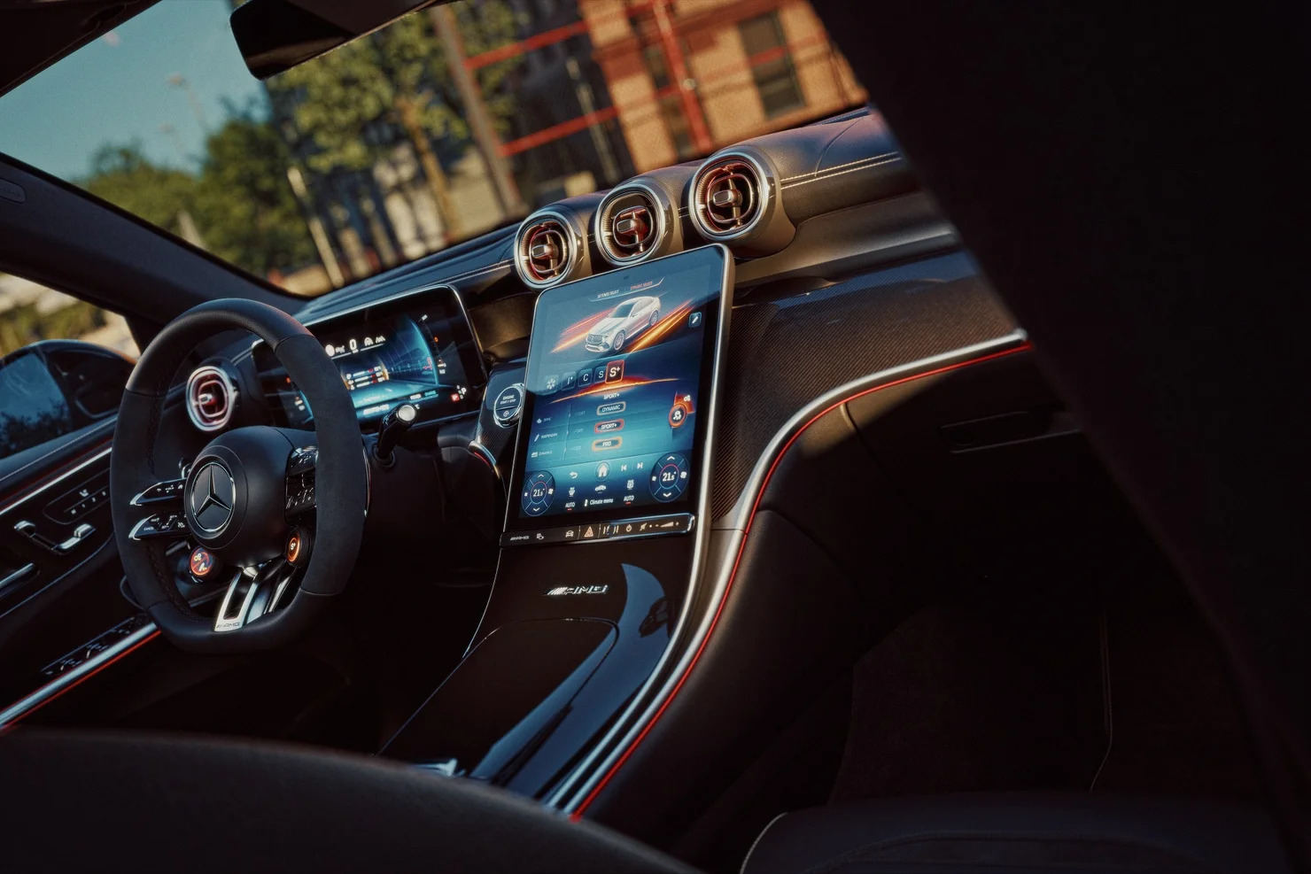 Заряженный кроссовер Mercedes GLC предложат в стандартном исполнении или как кросс-купе. В салоне установлены спортивные руль и сиденье.