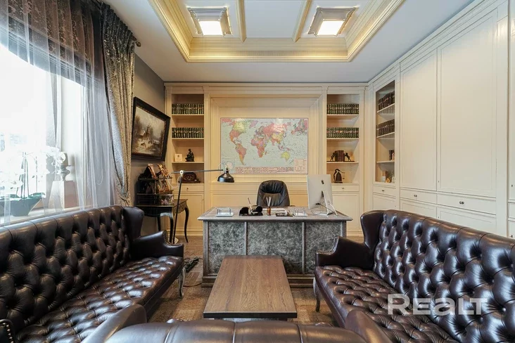 Общая площадь этого дворца — около 620 квадратов, жилая — более 400. В объявлении указано, что в свое время над проектом работали европейские дизайнеры.