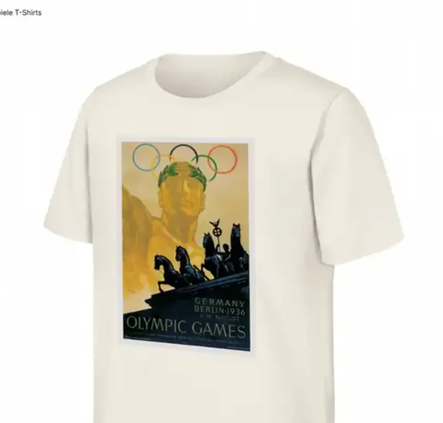 Однако внимание интернет-пользователей привлекла модель с изображением официального плаката Олимпиады 1936 года в Германии. Его автор – художник Франц Вюрбель. На принте изображены античная статуя с лавровым венком, квадрига Бранденбургских ворот в Берлине и олимпийские кольца.