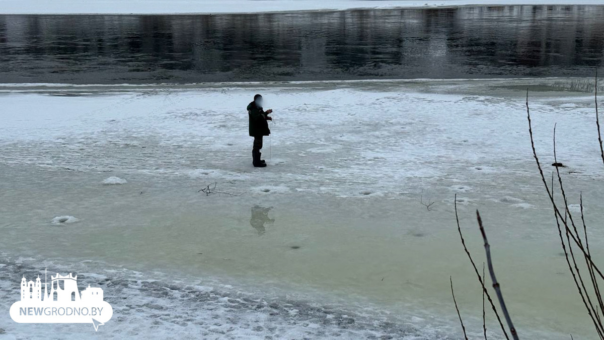 Необычную картину вчера заметили в Гродно: десятки человек собрались на льду небольшой затоки Немана. Одна из версий, что могло так привлечь собравшихся, — возможность хорошего улова.