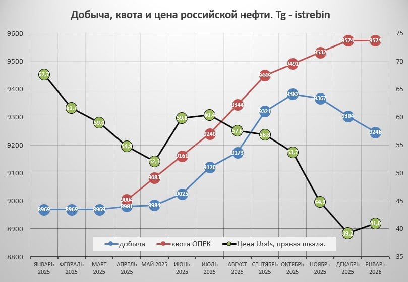 Вероятно начали закрывать или сокращать скважины с самой высокой себестоимостью добычи. В дальнейшем в декабре и январе-26 тренд на сокращение добычи продолжился.