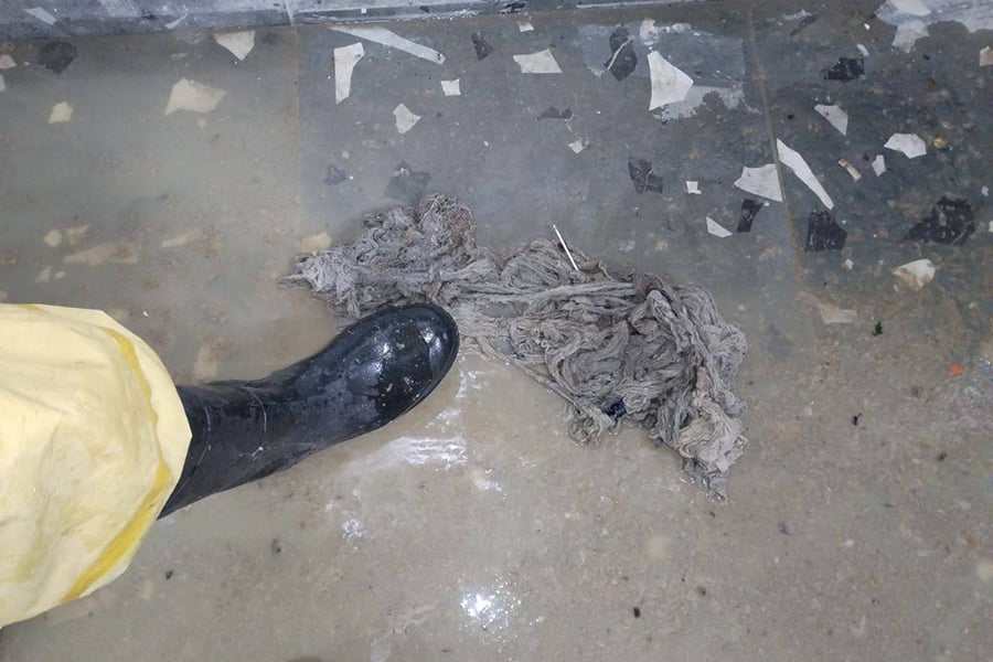 После промывки из системы извлекли ветошь и тряпки, перемешанные со строительными растворами, – можно увидеть на фото ниже.