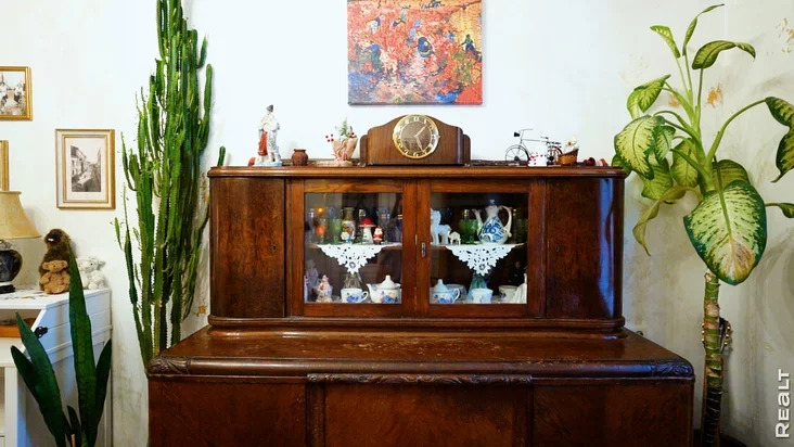 Особое место занимает советская мебель. Огромный комод с буфетом сталинского периода был куплен по объявлению. Денис переживал, что сейчас за такую ретро-модель попросят целое состояние, даже приготовился к тому, что уедет домой без него. Но владелец оценил советский массив в 150 рублей.