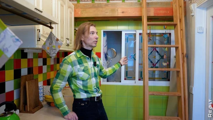 Денис воплотил в этой квартире все свои творческие задумки. Говорит, что создал не самый популярный интерьер, но тем самым привлекает внимание людей со схожими интересами и подходами к путешествию.