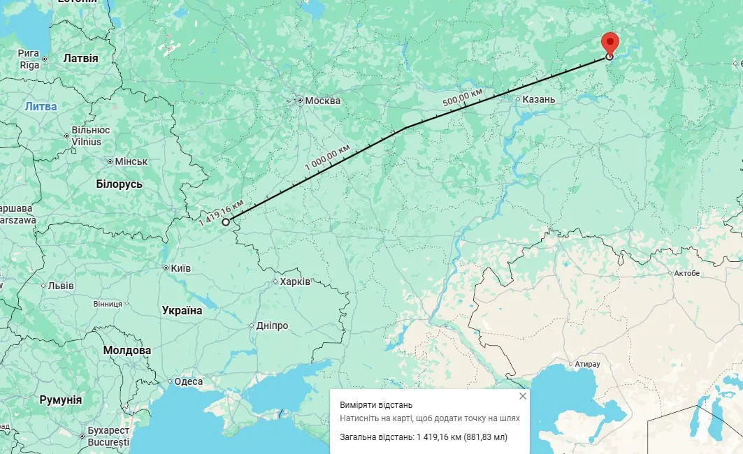 Масштабы важности завода для россиян настолько важны, что вокруг него выкопаны рвы и периметр, отмечают OSINT-аналитики. Расстояние от границы Украины до цели — около 1500 километров.