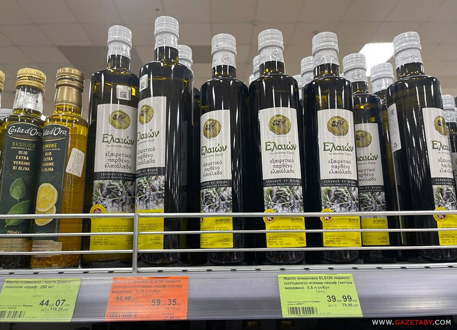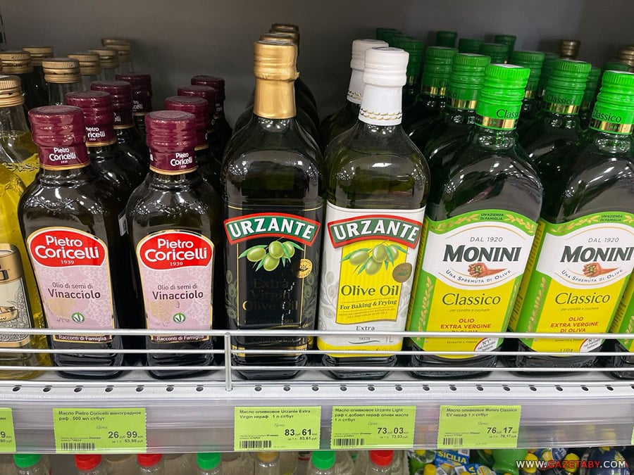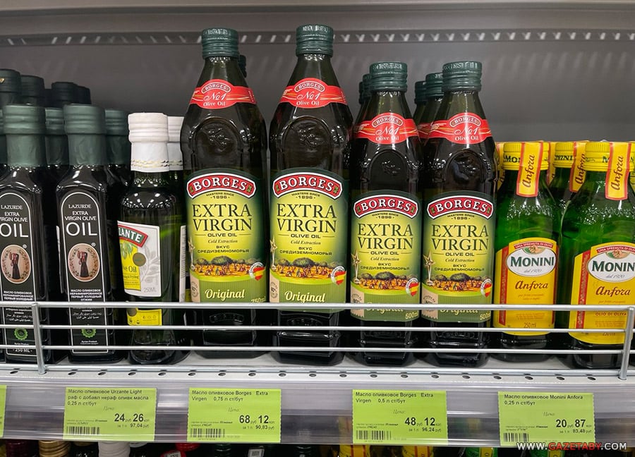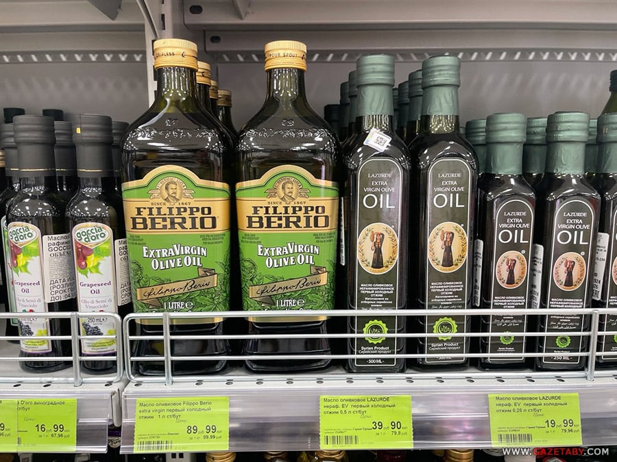 Есть в продаже и сирийско-турецкое оливковое масло. Цена: 79,8 рублей за литр.