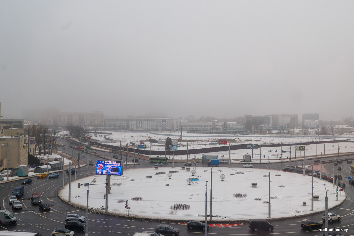 Площадка в двух шагах от вокзала и прямо возле станции метро «Площадь Богушевича» опустела. Но, как известно, свято место… Вскоре выяснилось, что на возвышенности построят многофункциональный центр с офисами, магазинами и паркингом. Осваивать территорию станет компания «Материк-Инвест». Как будет выглядеть новый ТРЦ, оставалось только прикидывать в своем воображении.
