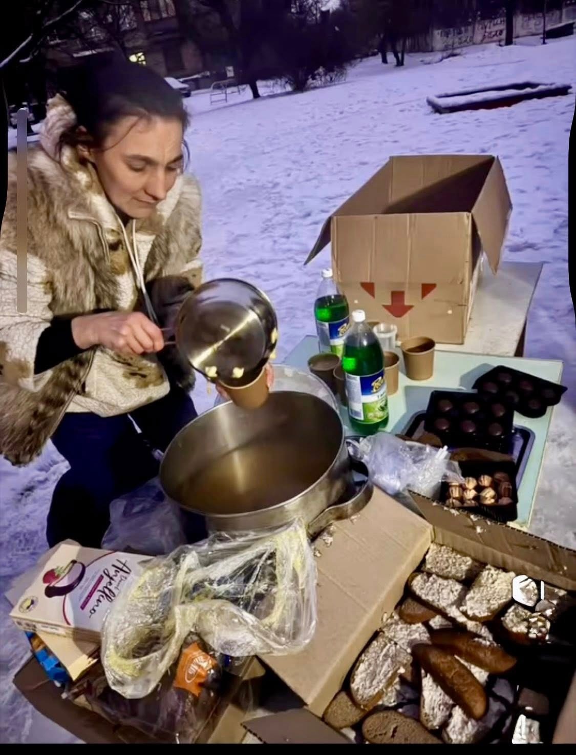 — Когда нет света и тепла, Киев выходит на улицы — появляются такие палатки, как наша. Я буду говорить про наш пункт: к нам приходят, чтобы согреться и поесть, потому что мы организовали все так, чтобы у нас всегда была горячая еда. Здесь есть свет, люди могут зарядить телефоны и пауэрбанки — вот так мы и справляемся, как можем.