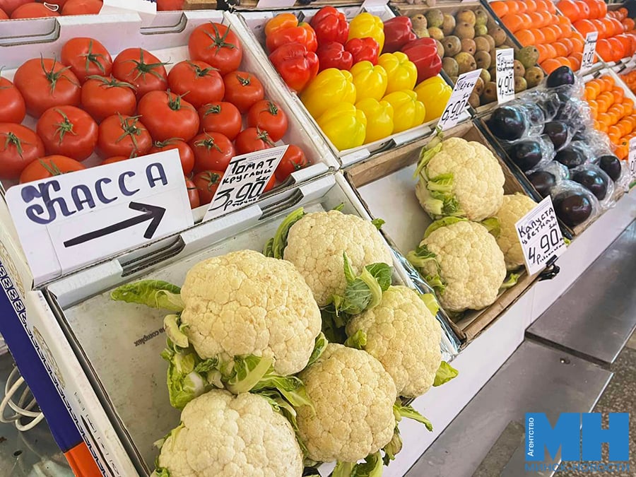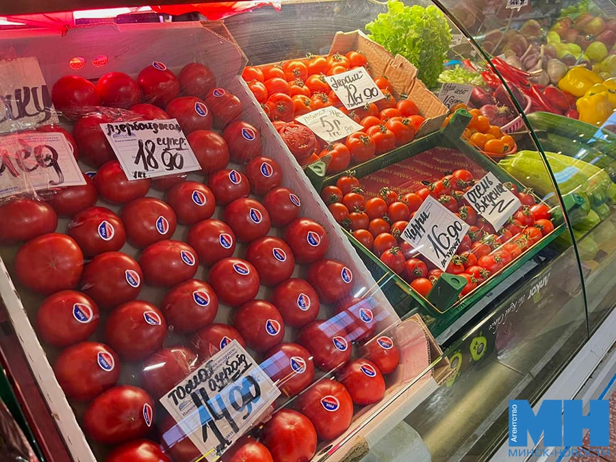 На овощных рядах покупатели активно набирают свежие продукты. Огурцы — от 2,90 до 9,90 рубля, помидоры — от 3,90 до 25 рублей, а черри стоят от 6,90 до 39,90 рубля.