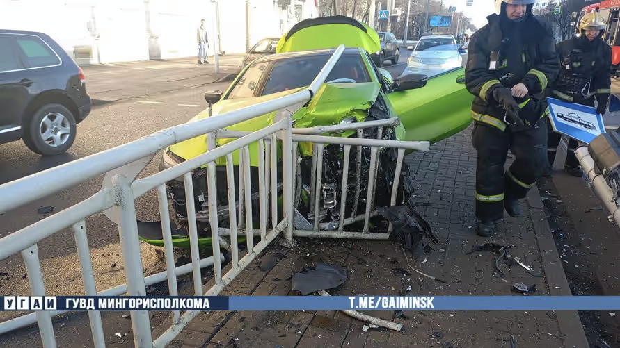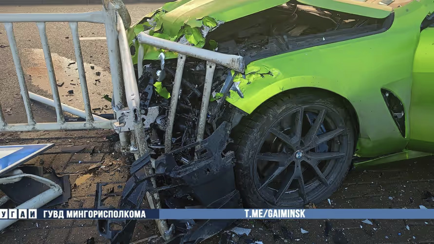 В Минске на улице Якуба Коласа около дома №9 20-летний водитель, не справившись с управлением, наехал на светофор и дорожные знаки, а потом въезд в ограждение остановочного пункта трамвая.
