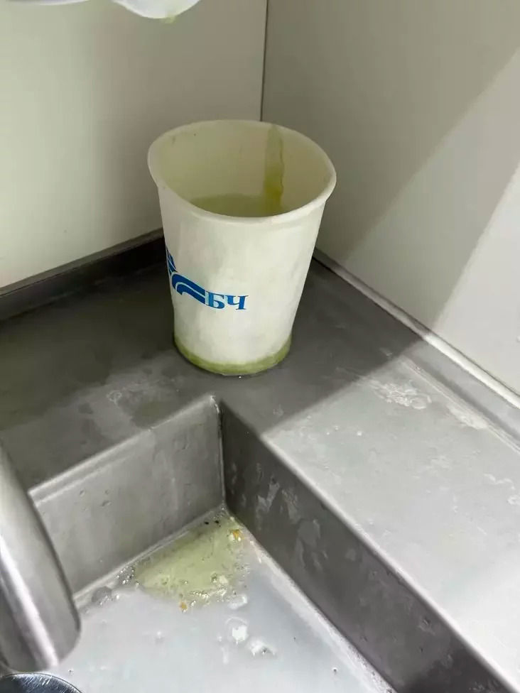 Официальная версия: «дозаторы украли, поэтому пока стаканчики». Только вот стоит это «временное» решение уже полтора года.
