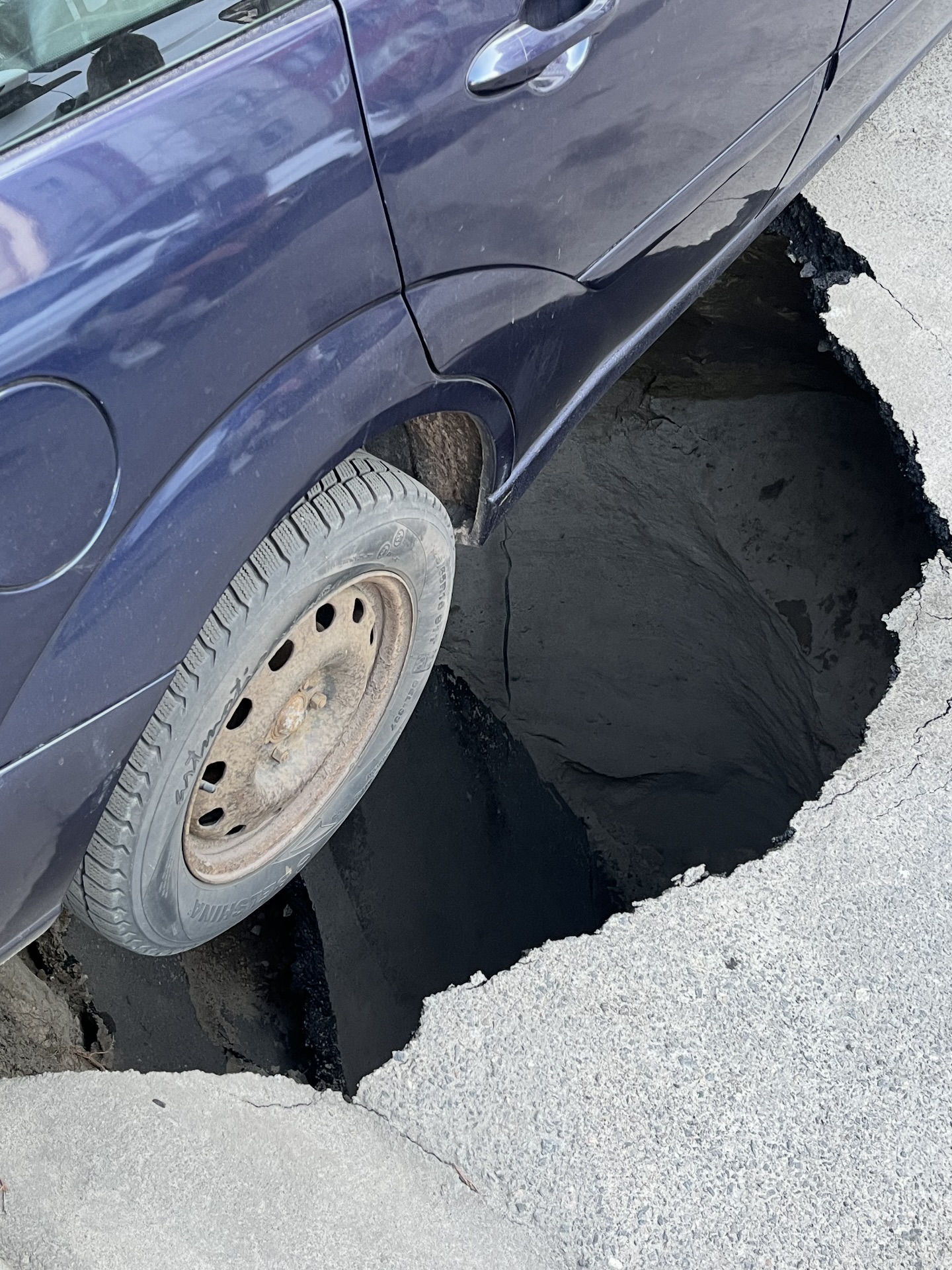 В Бресте под авто провалился асфальт