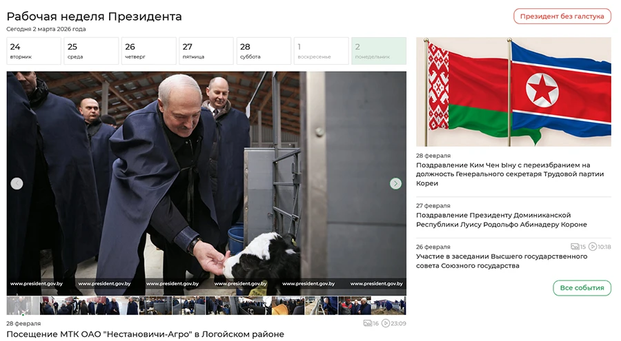 На сайте правителя по-прежнему телята и навоз.