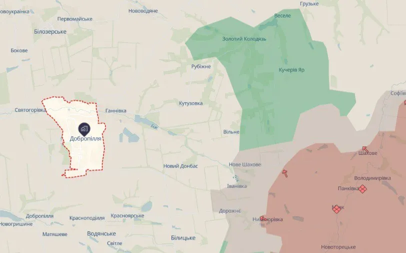 По оценке аналитиков, украинские подразделения недавнопродвинулись в центральной части поселка Новый Донбасс, расположенного к востоку от Доброполья.