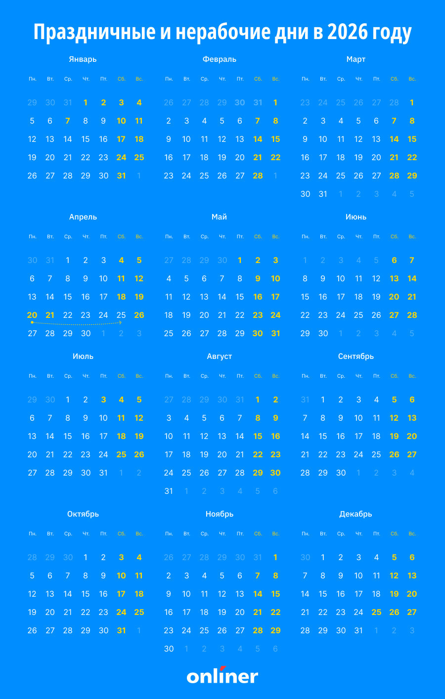 Весной белорусов ждут два длинных уик-энда