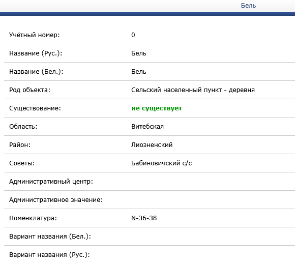 Деревня Бель в Бабиновичском сельсовете Лиозненского района Витебской области упразднена.