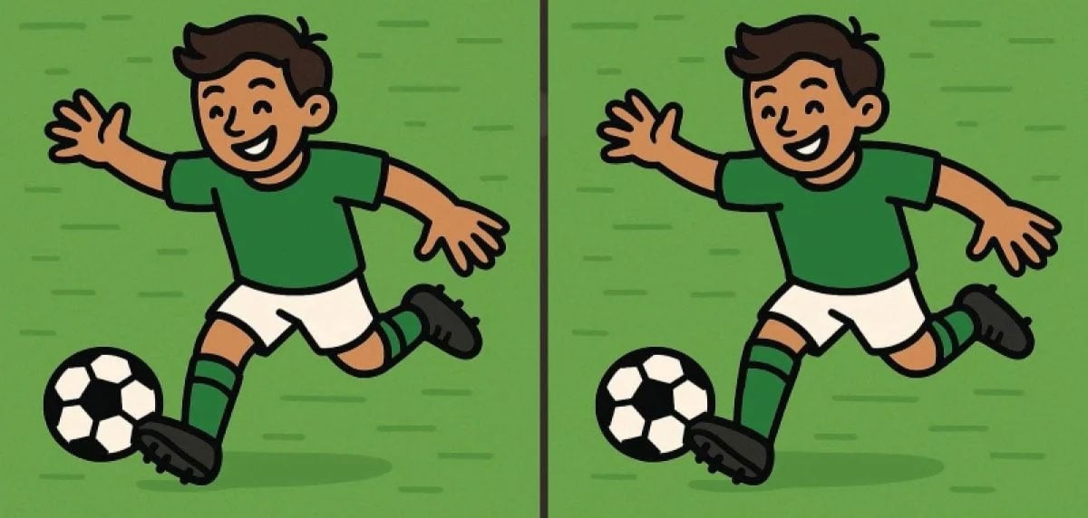 Готовы проверить себя? Взгляните на два изображения футболиста. На первый взгляд они полностью совпадают, однако в них спрятаны три едва заметных отличия. Сможете найти их всего за 23 секунды?