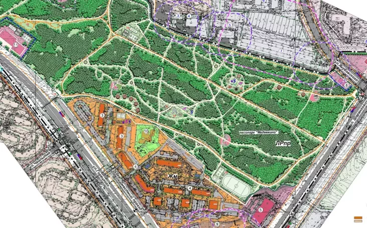В утвержденном проекте детального планирования (ПДП) этой территории не обозначено никаких капитальных объектов на месте нынешних вырубок. В базах государственных закупок также не значится ни одного тендера на проектирование или строительство в этом квадрате. Более того, если посмотреть на саму геометрию вырубленных полян, она абсолютно не совпадает с осями соседних улиц, что делает версию про прокладку транзитной магистрали неправдоподобной.