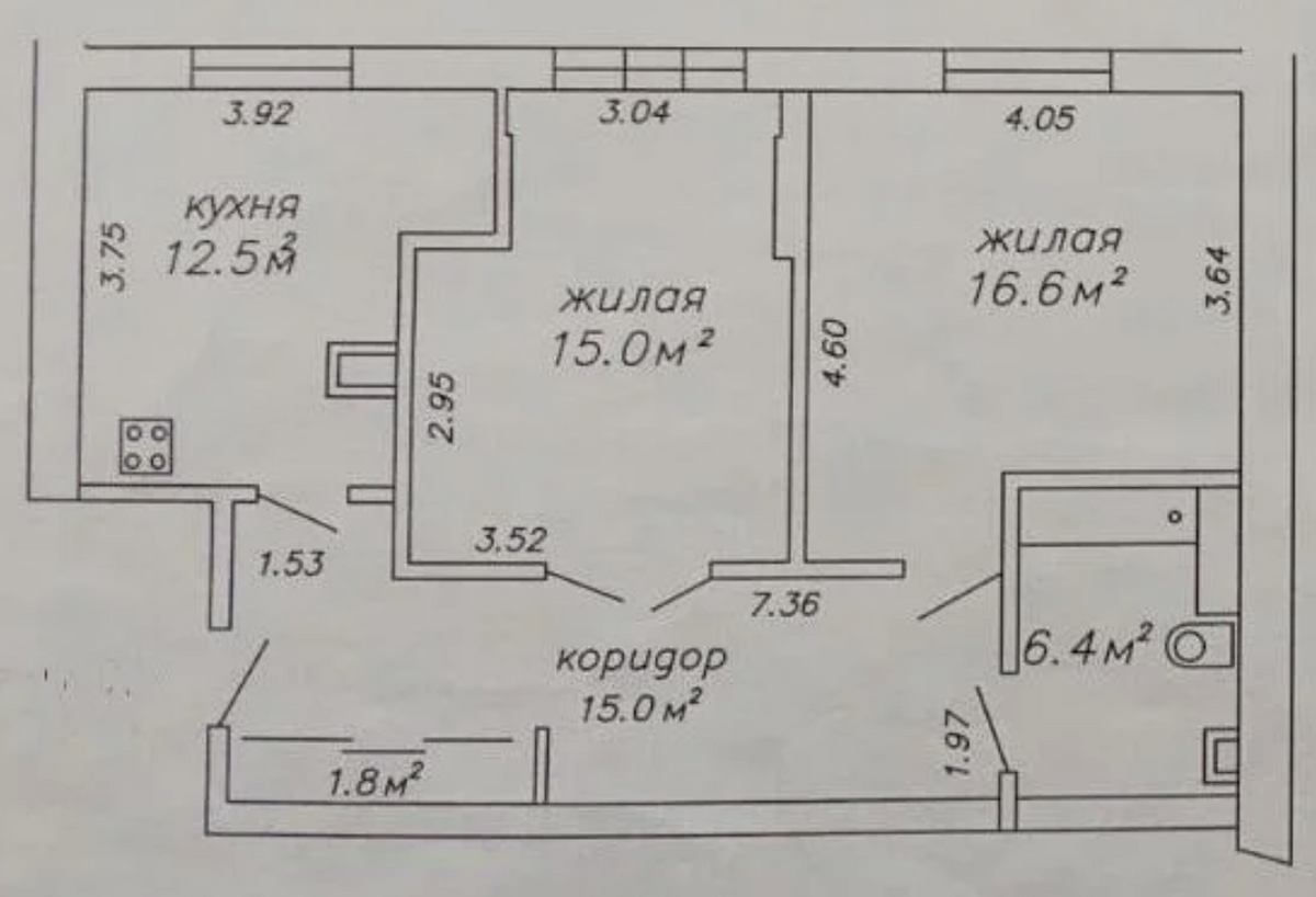 Квартира, которая сейчас выставлена на продажу, имеет площадь 67,3 кв. м. Высота потолков — 2,5 метра. Планировка: