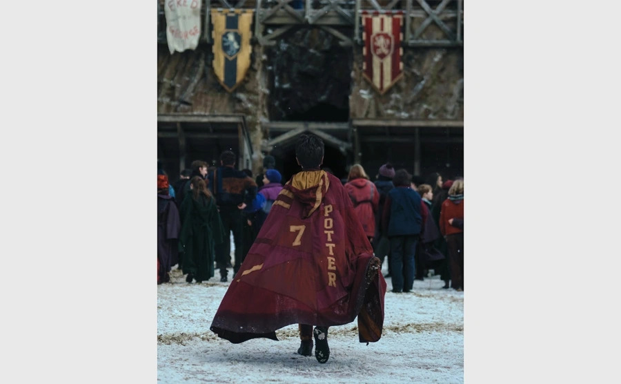 На нем со спины виден похожий на Гарри Поттера актер, на котором плащ для игры в квиддич, а в руке — метла. Кадр снят в зимней обстановке. Пост авторы подписали словом «Завтра».