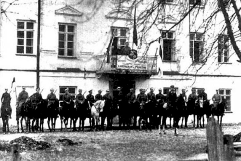 Впервые бело-красно-белый флаг был поднят над зданием губернаторского дома в Минске после изгнания из города большевиков 19 февраля 1918 года.