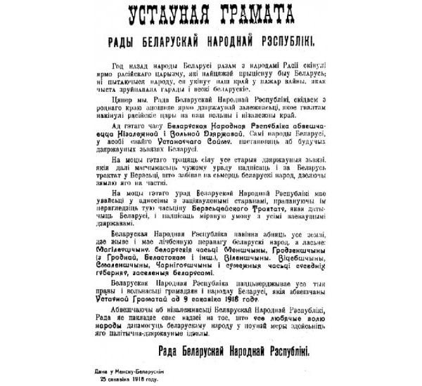 25 марта 1918 года в оккупированном немцами Минске Рада Белорусской Народной Республики (бывший исполком Всебелорусского съезда) приняла Третью уставную грамоту, которой БНР провозглашалась свободным и независимым государством. Рада БНР объявила, что Брестский мирный договор, подписанный большевиками и немцами, потерял силу, поэтому призвала пересмотреть ее условия.