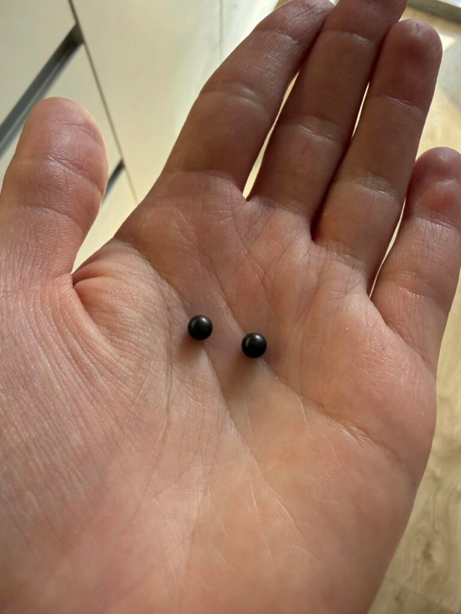 - Честно, была в шоке: вот эти два металлических шарика вывалились сегодня из завитушки с корицей. Сначала показалось, что, может, перец, но потом один упал и покатился со звуком, и тут стало понятно, что не перчик. Очень похоже на шарики подшипника, – написала девушка в своем посте.