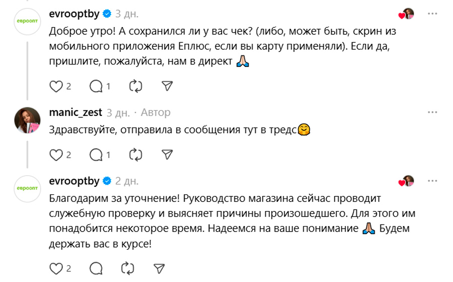 Представители торговой сети «Евроопт» оперативно отреагировали в комментариях, пообещав провести служебную проверку. О ее результатах пока не сообщается, но случай привлек внимание врачей-гигиенистов, которые 23 марта оценили ситуацию в магазине.