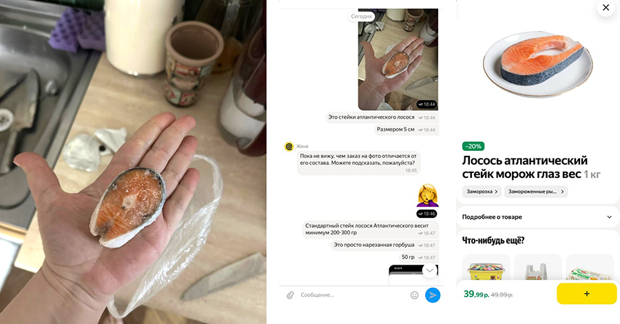 Другая минчанка заказала в «Гиппо» атлантического лосося по акции, но привезенная рыба оказалась совсем не такой, как на картинке. Возмущенный пост набрал более 620 тыс. просмотров и попал в СМИ.