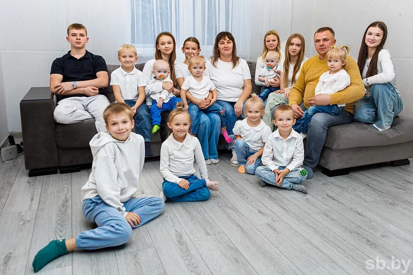 Елена и Сергей Олехновичи из Солигорского района воспитывают 15 детей, 14 из которых — несовершеннолетние. Среди детей: Нейтан, Наоми, Мишель, Есения, Мелисса, Рувим, Ефим, Лолита, Давид, Марк, Алиса, Вероника, Виолетта, Яна, Алена. Всего 10 девочек и 5 мальчиков, пишет Onliner.by .