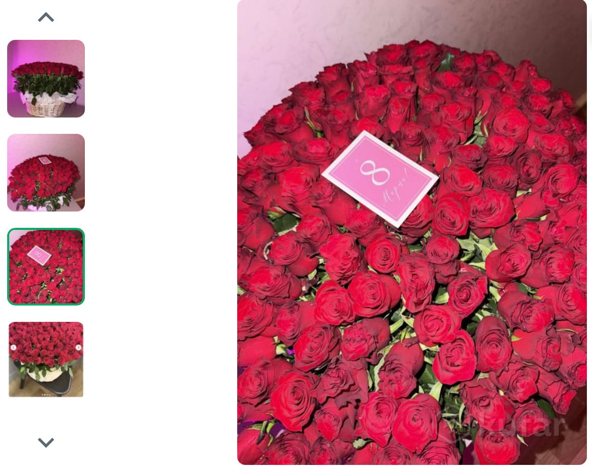«151 роза в корзине, подарена вечером 7 марта. Стоимость на сайте 1200 рублей. Самовывоз в любое время», — объявление появилось накануне праздника.