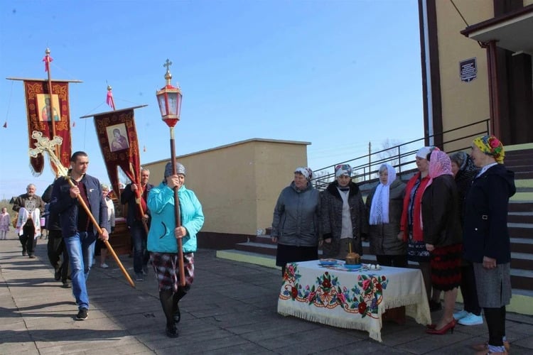 Праздничная процессия с той самой иконой, хоругвями, крестом, с пасхальными песнопениями отправляется от Свято-Михайловской церкви по деревне. Из каждого дома выносят стол, на котором ставят пасхальные угощения, цветы, пожертвования для церкви. Крестный ход останавливается возле дома, священник благословляет хозяев молитвой и окропляет святой водой. А «намским» назвали праздник, потому что благая весть приносится персонально каждому – то есть, «нам Вялікадзень».