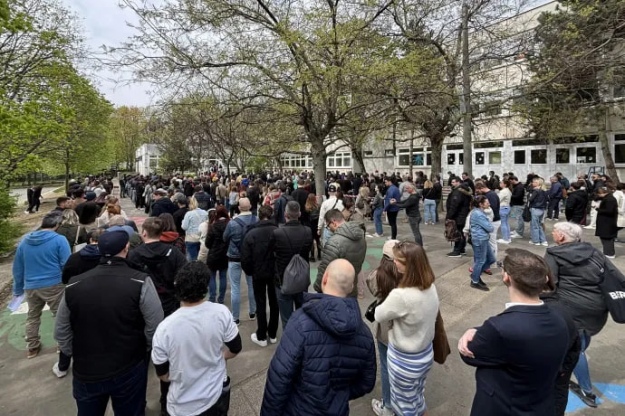 СМИ публикуют фотографии с избирательных участков. Например, в Будапеште, как свидетельствуют фото, люди выстраиваются в очереди, чтобы проголосовать на выборах.