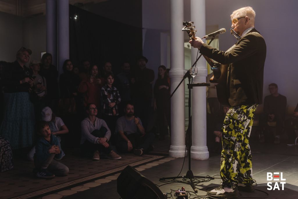 Для непродолжительного концерта на открытии выставки он специально, как признался, подготовил «только депрессивные песенки». Начал с NRM-ского «Худсовета» («Прыдумай сабе свой свет»), однако закончил оптимистичной «Дай мне знак»: «А неўзабаве прыйдзе дзень, якога так чакалі ўсе…».