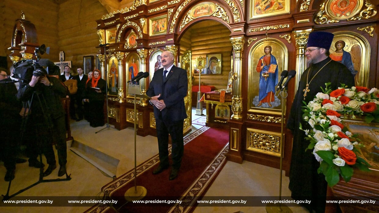На православную Пасху диктатор Александр Лукашенко 12 апреля посетил храм Святителя Николая Чудотворца в агрогородке Евдокимовичи Шкловского района. Он сказал, что его самое любимое «действо» в храме — это поставить свечу. Но, по своей традиции, Лукашенко не перекрестился.