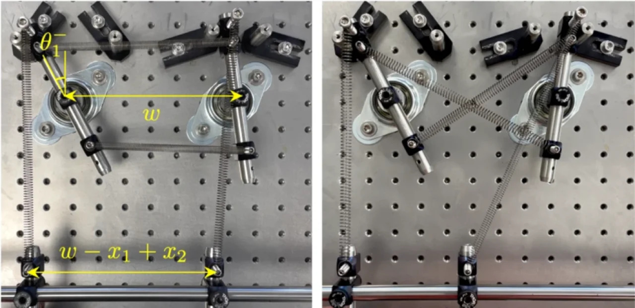 Инженеры сконструировали три механические системы из стальных стержней и пружин. Каждое из устройств выполняет собственную вычислительную функцию: одно работает как счетчик физических потяжений, второе — как вентиль для различения четных и нечетных входных сигналов, третье выступает датчиком для фиксации приложенной силы.