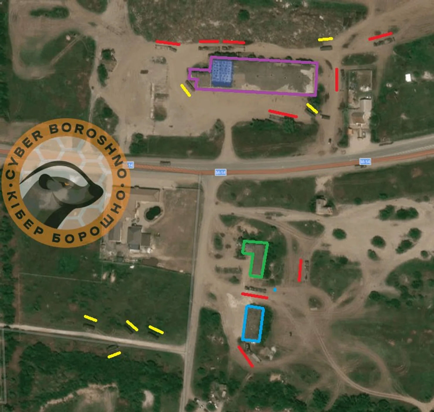 Аналитики объяснили, почему база «Рубикон» — это на самом деле логистический центр ВС РФ, который обеспечивает ресурсами российскую армию. Во-первых, на фото за июнь 2025 года на указанной площадке зафиксировали почти полтора десятка военных машин: девять тралов (черные) и семь грузовиков (желтые). Во-вторых, рядом идет трасса М14, которая соединяет Донецк и Мелитополь, и по этой трассе следуют военные грузы для подразделений ВС РФ в Донецкой и Запорожской областях.