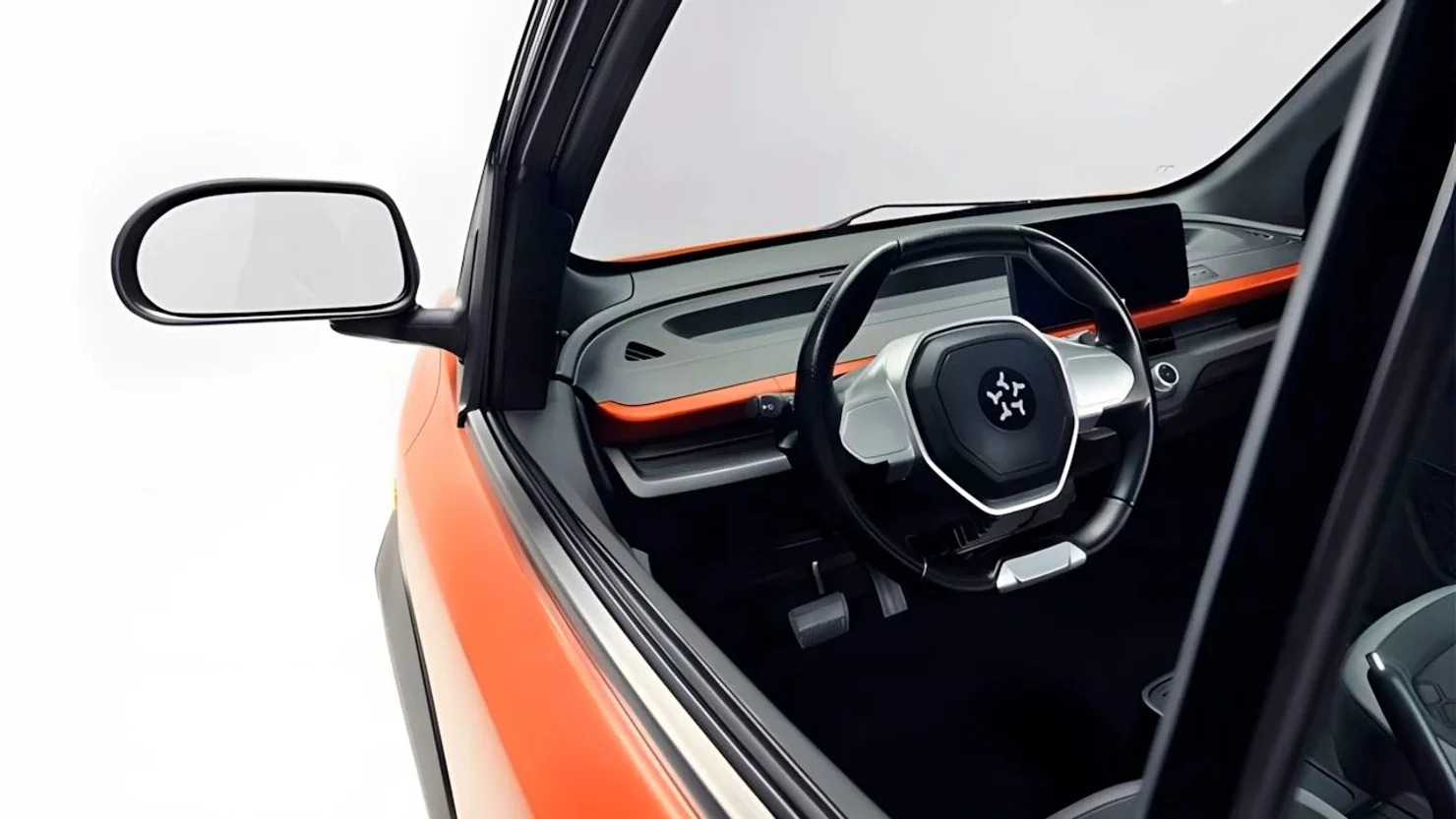 Двухместный Karea Fit достигает всего 2631 мм в длину. У него короткий капот, большие круглые фары и массивные неокрашенные бамперы.